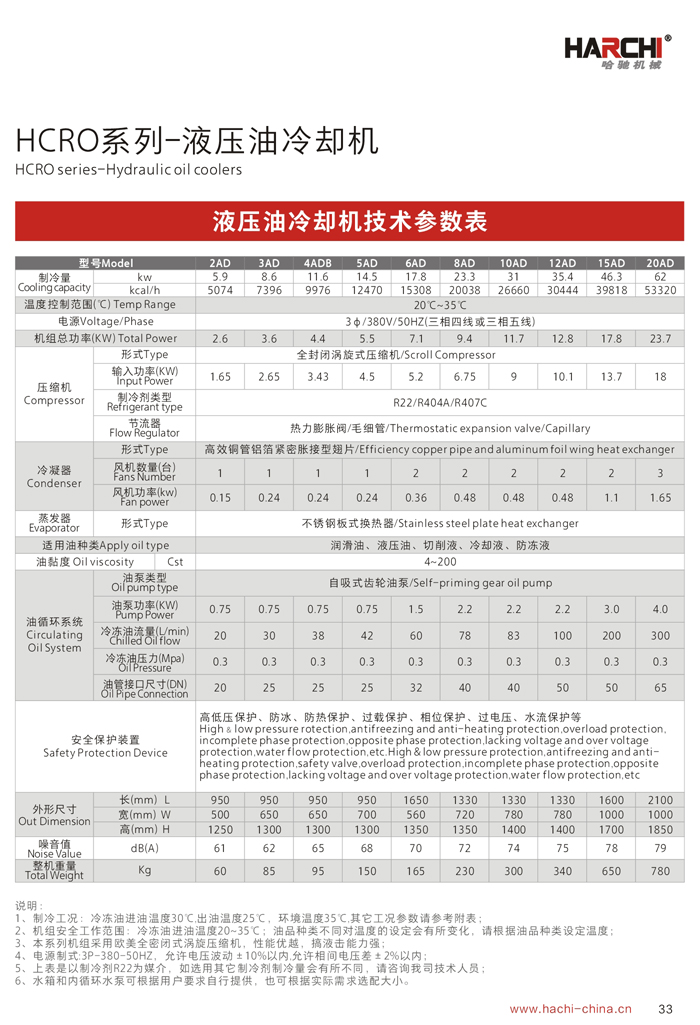 1、制冷能力是在環(huán)境溫度35℃,進(jìn)油溫度35℃,出油溫度30℃,油品為ISO VG32條件下測(cè)得。 2、用戶在選擇油冷機(jī)時(shí),必須選擇油液需控制的溫度范圍(1)18℃-25℃ (2)25℃-35℃ (3)35℃-45℃ (4)45℃以上。本公司推薦液壓油合理的溫度控制范圍為35℃-45℃. 3、油冷機(jī)吸油口必須用硬管連接,且加裝過濾器。 4、吸油管長(zhǎng)度不應(yīng)超過1.5米,如超出必須加粗吸油口。 5、油冷機(jī)吸油口應(yīng)靠近設(shè)備回油口,出油口應(yīng)靠近設(shè)備供油口。 6、如吸油口太長(zhǎng),需將油泵與機(jī)組分離。 7、以上機(jī)組使用環(huán)境為5~42℃,42℃以上屬高溫機(jī)組,外形尺寸及相關(guān)參數(shù)會(huì)有所變更,請(qǐng)選型時(shí)注意。 8、參數(shù)表內(nèi)為本公司標(biāo)準(zhǔn)機(jī)型,本公司接受客戶特殊訂貨。 適用種類: ◇ CNC車床、銑床、磨床、拉床 ◇ CNC旋轉(zhuǎn)臺(tái)、油壓機(jī)、木工雕刻機(jī) ◇ CNC立式/臥式加工中心、綜合切削加工中心 ◇ 高速機(jī)械主軸、電主軸、靜壓(動(dòng)靜壓)主軸 ◇ 各種機(jī)械的液壓站及潤(rùn)滑系統(tǒng) ◇ 放電加工設(shè)備.