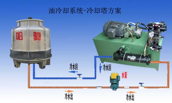 工業(yè)油冷卻方案: 1、在工業(yè)生產中經常會遇到機械設備在生產過程中導致油溫或機器溫度升高影響正常的工作效率。 2、冷卻油溫或冷卻機器可以選用冷卻水間接地去冷卻降低油溫或機器的溫度。 3、被冷卻的油可以是導熱油、液壓油、潤滑油、切削液、機油等各種液體介質。 4、選擇具體的工業(yè)冷卻塔參數請參照:http://www.hachi-china.cn 下面的方案就是選用工業(yè)冷卻塔來冷卻油溫,工作流程示意圖請參照以下圖片示例: